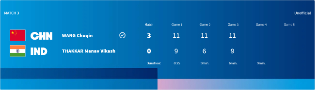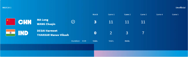 这么,头号种子中国队以3-0横扫14号种子印度队,晋级男团8强。