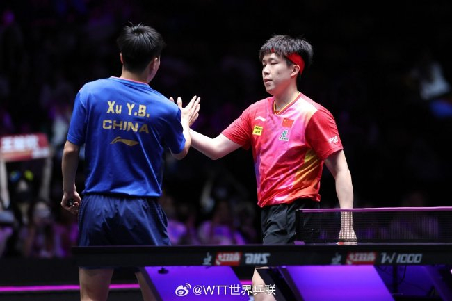 在晚场男单第二轮的国乒德比中,王楚钦用时26分46秒,连胜三局,以3-0(11-7/12-10/11-9)横扫队友徐瑛彬,奏凯晋级8强。