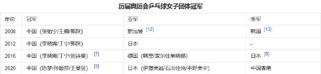 这么,2号种子日本女团大比分3-1顺服5号种子德国女团,继2012年伦敦奥运会和2020东京奥运会之后,第3次打进奥运会乒乓球女团决赛,同期亦然第3次与国乒女团争冠。