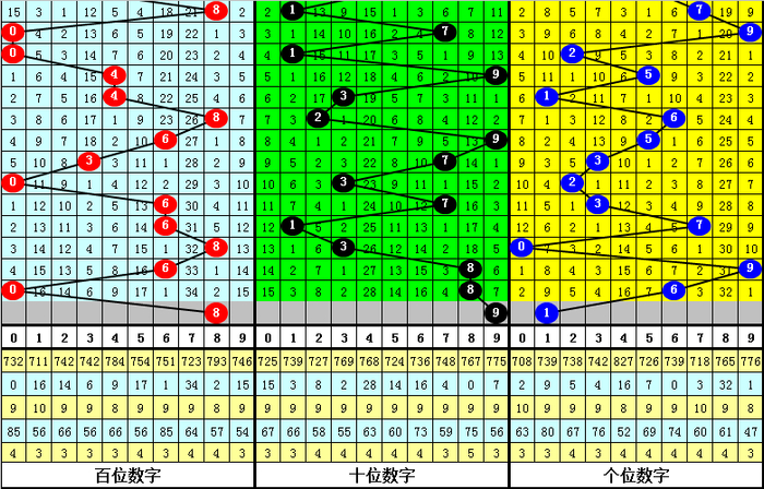 3.号码012路比为10:10:4,2路号码走冷,本期号码012路比参考1:1:1。