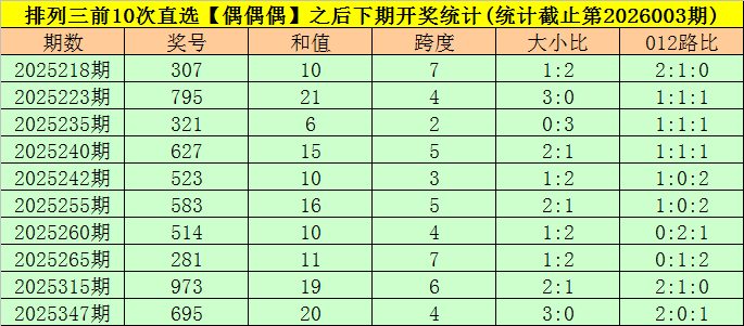 3.在前10次【偶偶偶】类型奖号开出之后,其下期奖号离别开出:377、755、311、677、533、533、544、211、933、655;