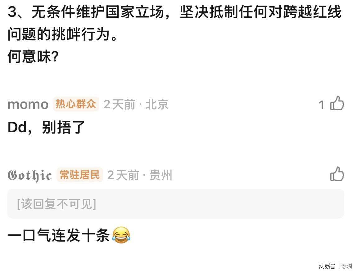 对此,有网友觉得这是严重寻衅,咱们无要求珍贵国度态度,执意足下任何额外红线的寻衅行为。