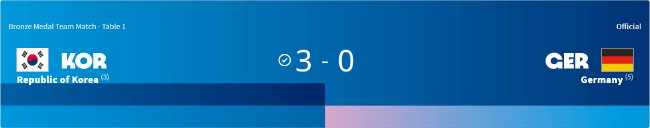 这么,3号种子韩国女团以总比分3-0横扫5号种子德国女团,夺得铜牌。