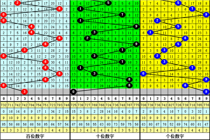 在最近9期开非凡偶分散:偶偶偶的奖号为:660-282-220-286-628-420-202-802-826,不才期出现号码分辨为:795-321-627-523-583-514-281-973-695。其中百十个位号码分散情况如下: